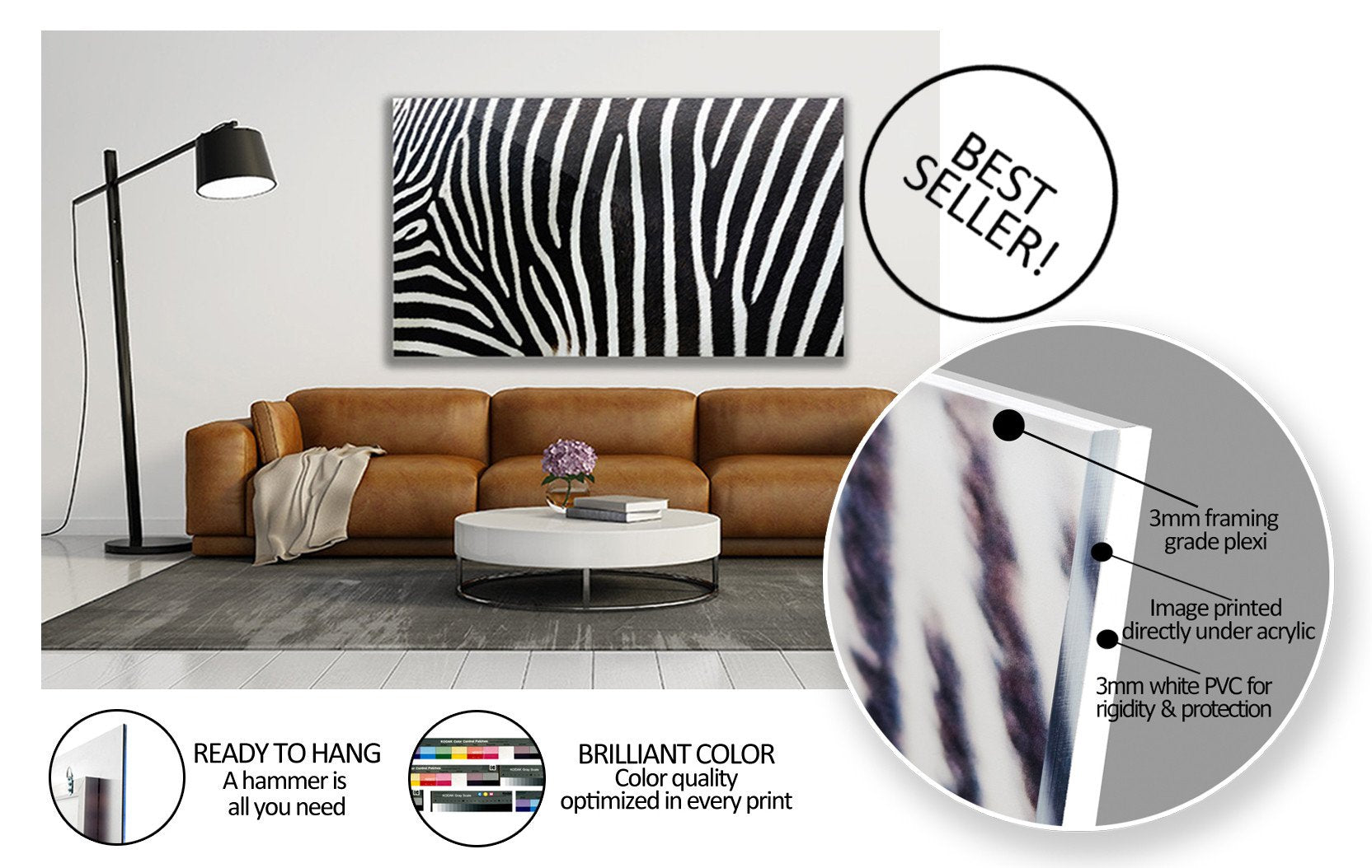 Direct Print on Acrylic Decorative Plexi are great for homeowners who are looking to decorate their walls, or for commercial, office and retail settings, as well as entry-level photographers and artists who are looking to test the acrylic medium. A Direct Print on Acrylic Decorative Plexi has the same frameless yet powerful look as Fine Art Grade PlexiFoto but differs mostly in the technique by which the image is applied to the Plexiglass. Direct Print on Acrylic Decorative Plexi may also be used for promotional products, locations, or elegant signage and logos.